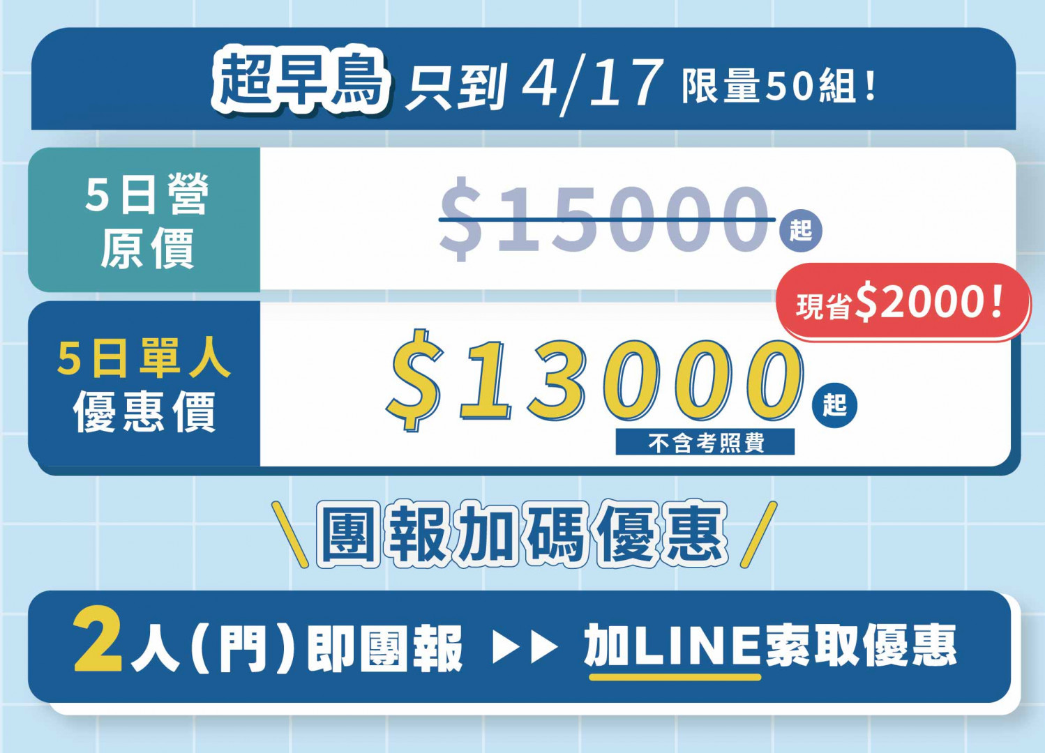 (本營隊不含考照費,需於購買頁加購:1500元)